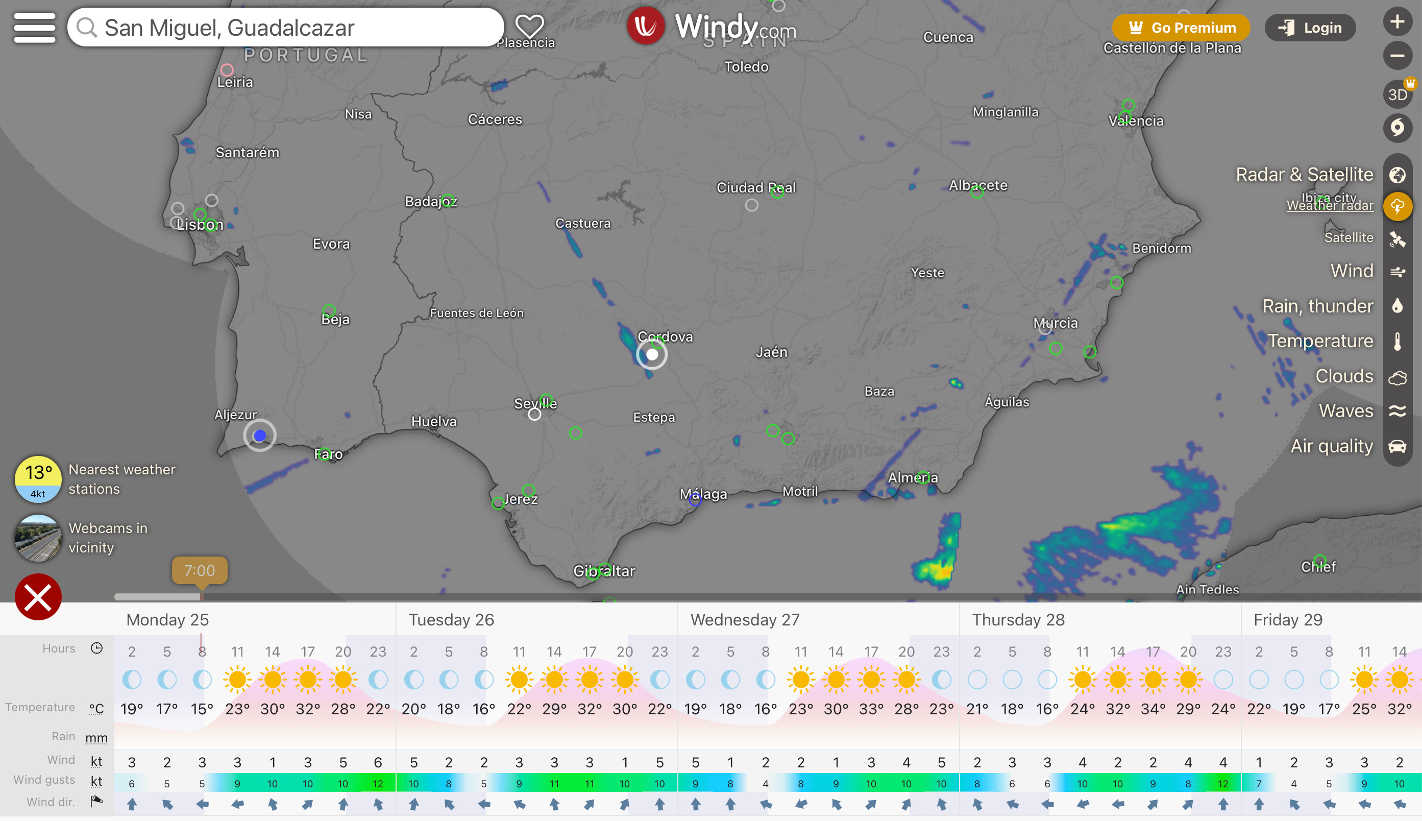 Windy: Southern Spain 25/9 2023